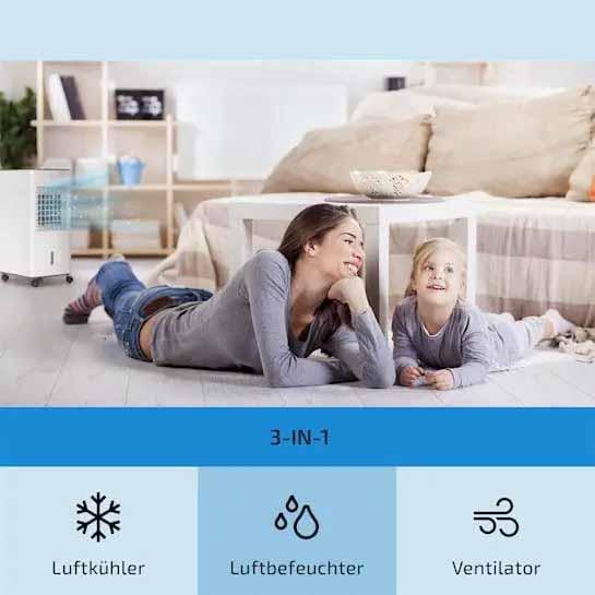 Повітряний охолоджувач створить комфортний мікроклімат у будь-якому місці, оскільки швидко остудить нагріте повітря. Прилад працює без попередніх налаштувань. Його необхідно залити холодною водою (найкраще крижаною), покласти 2 охолоджуючі елементи, під'єднати до мережі та натиснути на кнопку. Після увімкнення кондиціонер забезпечить вас прохолодним повітрям на декілька годин. Охолоджувач не містить фреонів і абсолютно безпечний.